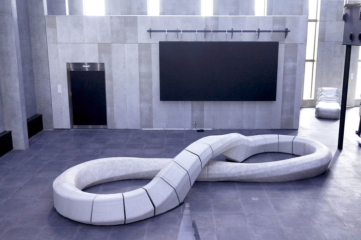 画家のマウリッツ・エッシャーにインスパイアされたこの作品は福島RDMセンターのロビーに置かれ、人が集い、常に進化し続けるこの拠点の永遠性を表現している。八角形の断面を捻りながら一周して∞の形状を作り、半分は印刷コンクリート、半分はファブリックでシームレスに繋がっている。今回この作品を作るために平行でない印刷をするためのプログラムを新規開発した。デジタルツールも活用しながら意匠・構造・製造・施工を統合設計し、限られた期間の中で円滑にプロジェクトを進行した。